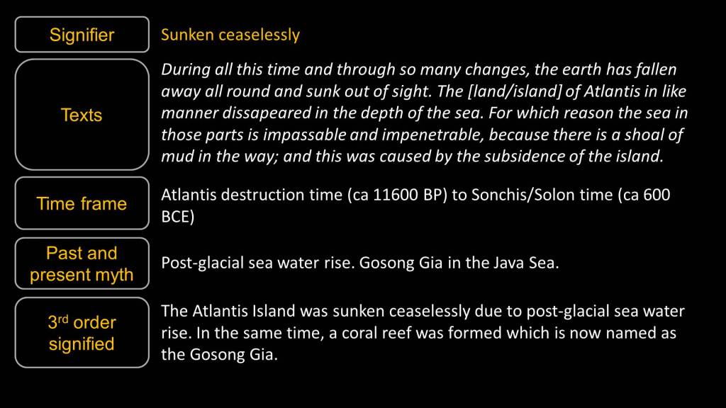 The quest to decode the mystery of Atlantis has inspired explorers, scholars, and seekers for centuries. In this work, I present a multidisciplinary research journey that re-examines Plato’s narrative through the lens of semiotics, geology, linguistics, and history. Moving beyond the conventional boundaries of Western Mediterranean-centered theories, this study reconstructs the lost civilization of Atlantis within the paleogeographical context of Sundaland in Southeast Asia.