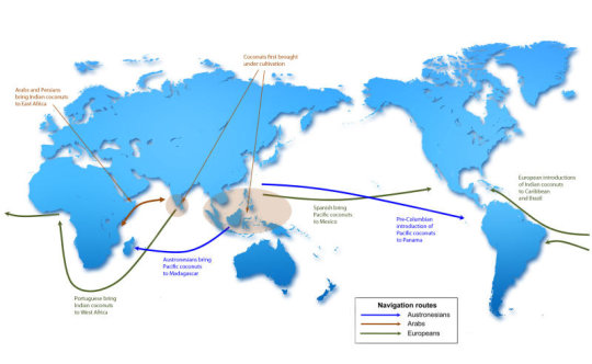 Bee F. Gunn, Luc Baudouin and Kenneth M. Olsen, Independent Origins of Cultivated Coconut (Cocos nucifera L.) in the Old World Tropics, 2011. PLoS ONE 6(6): e21143. doi:10.1371/journal.pone.0021143.